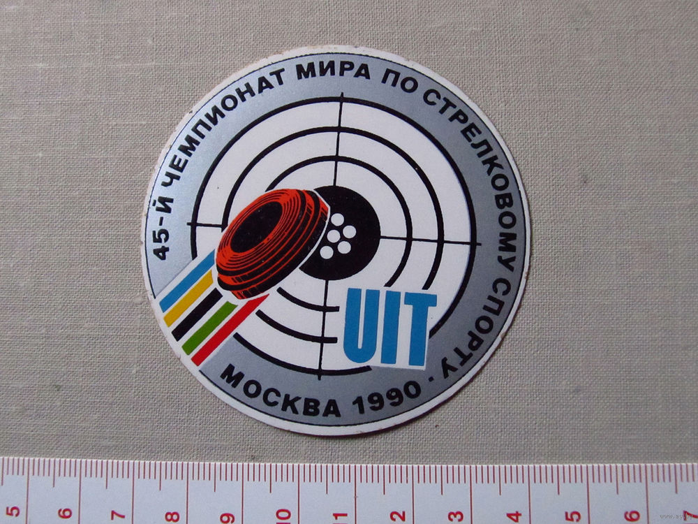 Наклейка Стикер Пулевая стрельба 45-й чемпионат мира по стрелковому спорту Москва 1990 СССР Новая