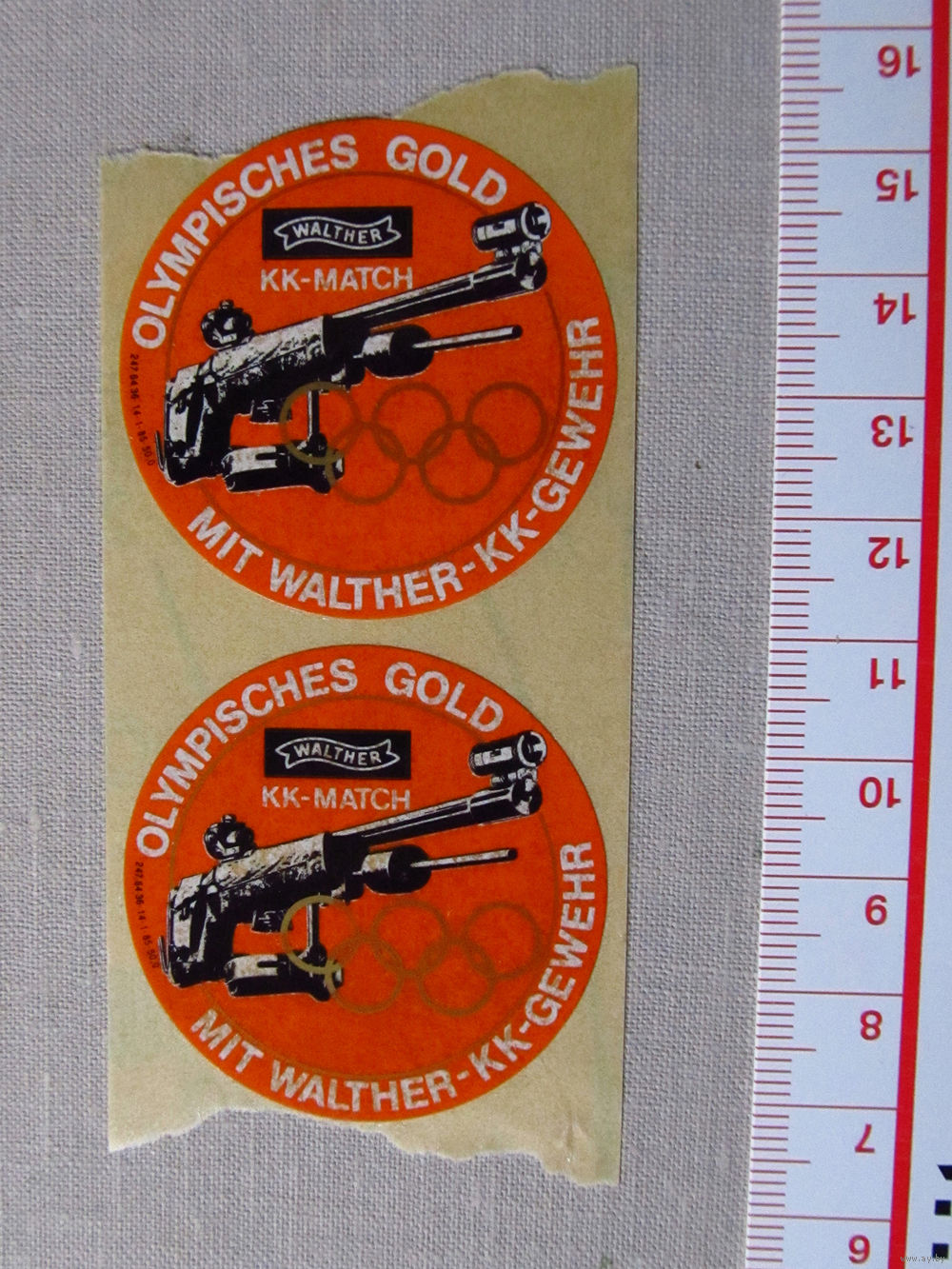 Наклейка Стикер Пулевая стрельба Walther реклама малокалиберных спортивных винтовок Новая Германия 1980-е