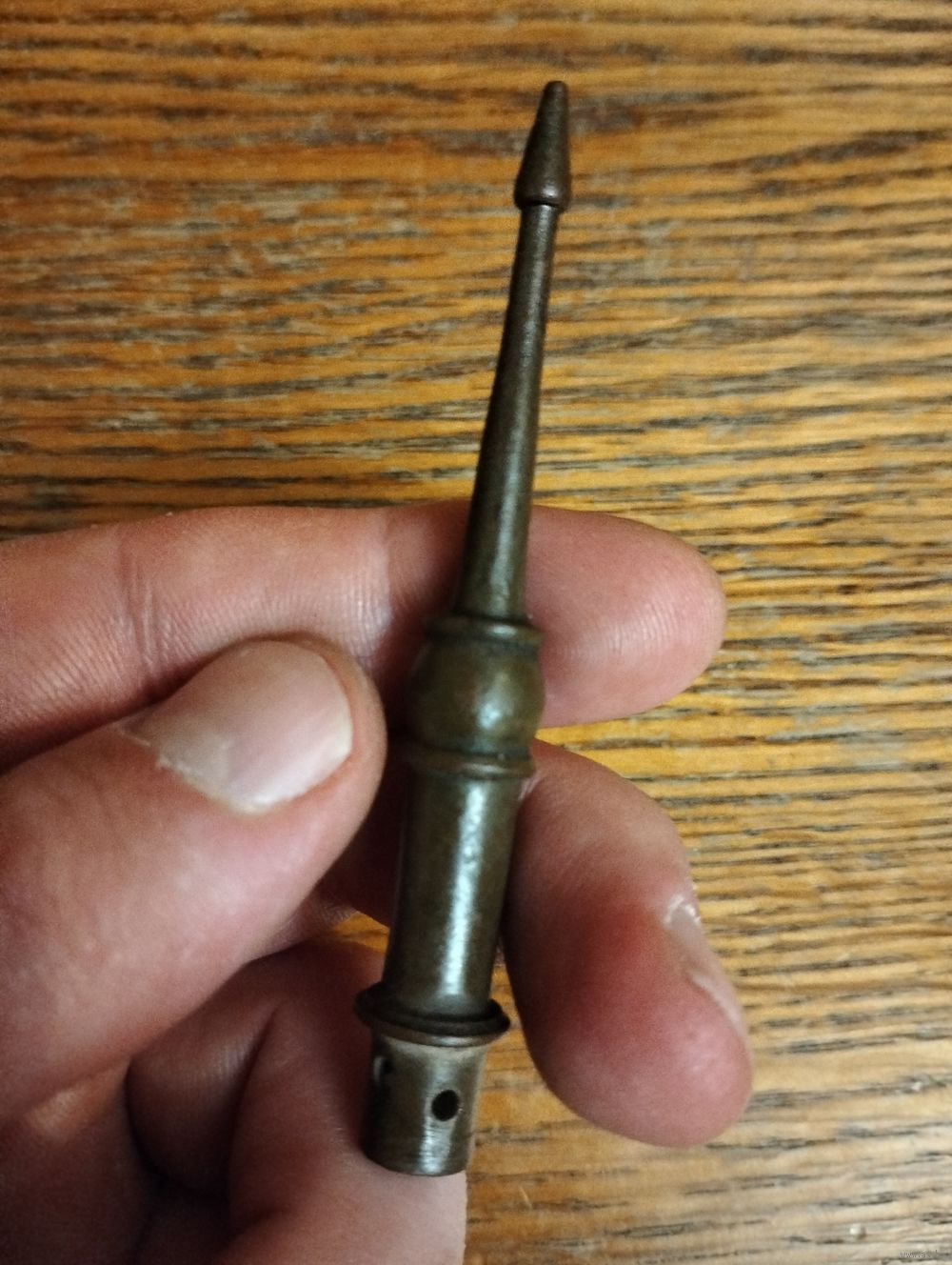 | Металл крепкий. Патина светло-зеленая. Длинна 82 мм. | |