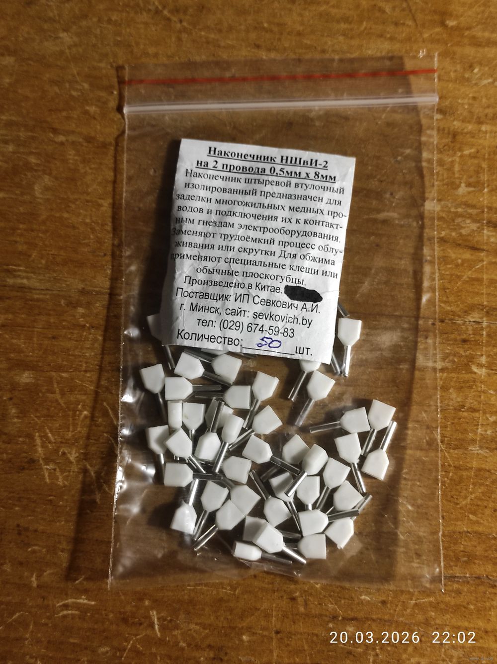 Наконечник штыревой втул двойной НШвИ-2 0,5х8 (50шт)