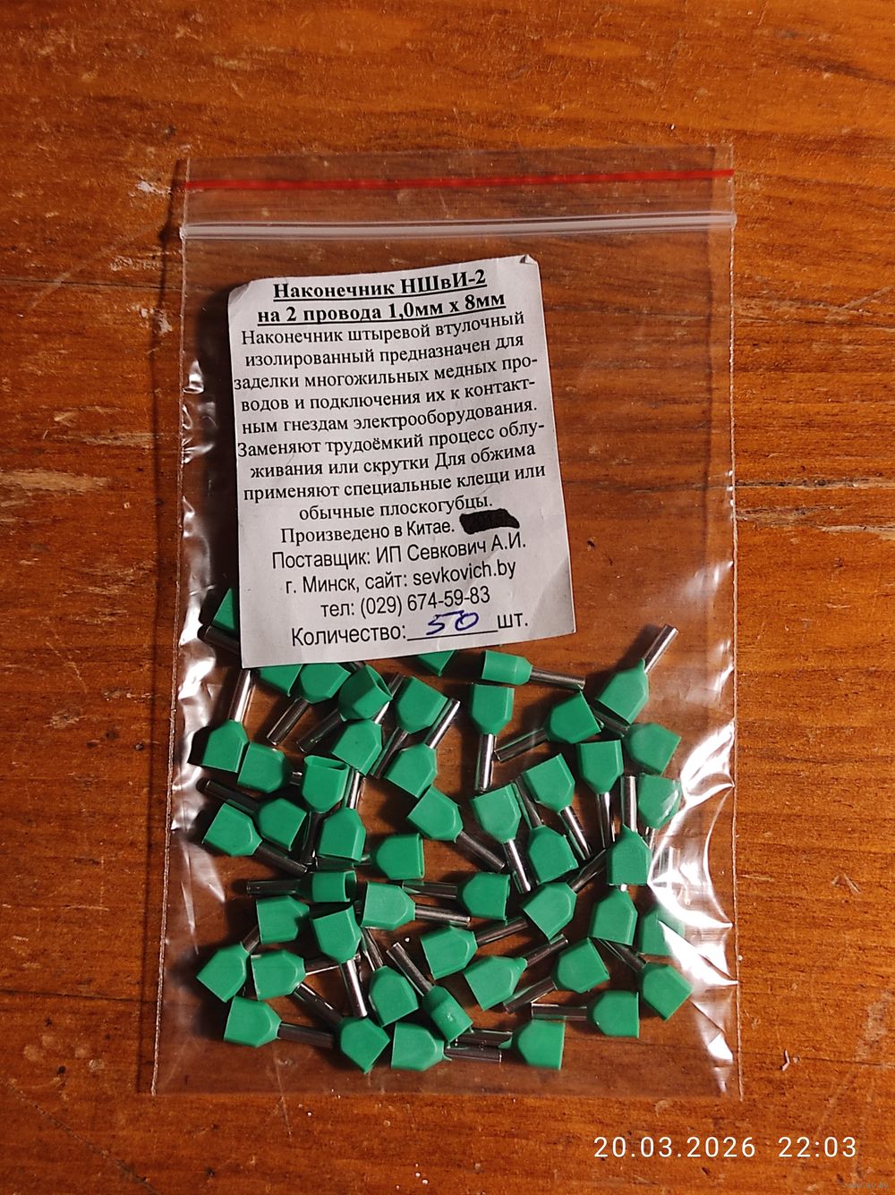 Наконечник штыревой втул двойной НШвИ-2 1,0х8 (50шт)