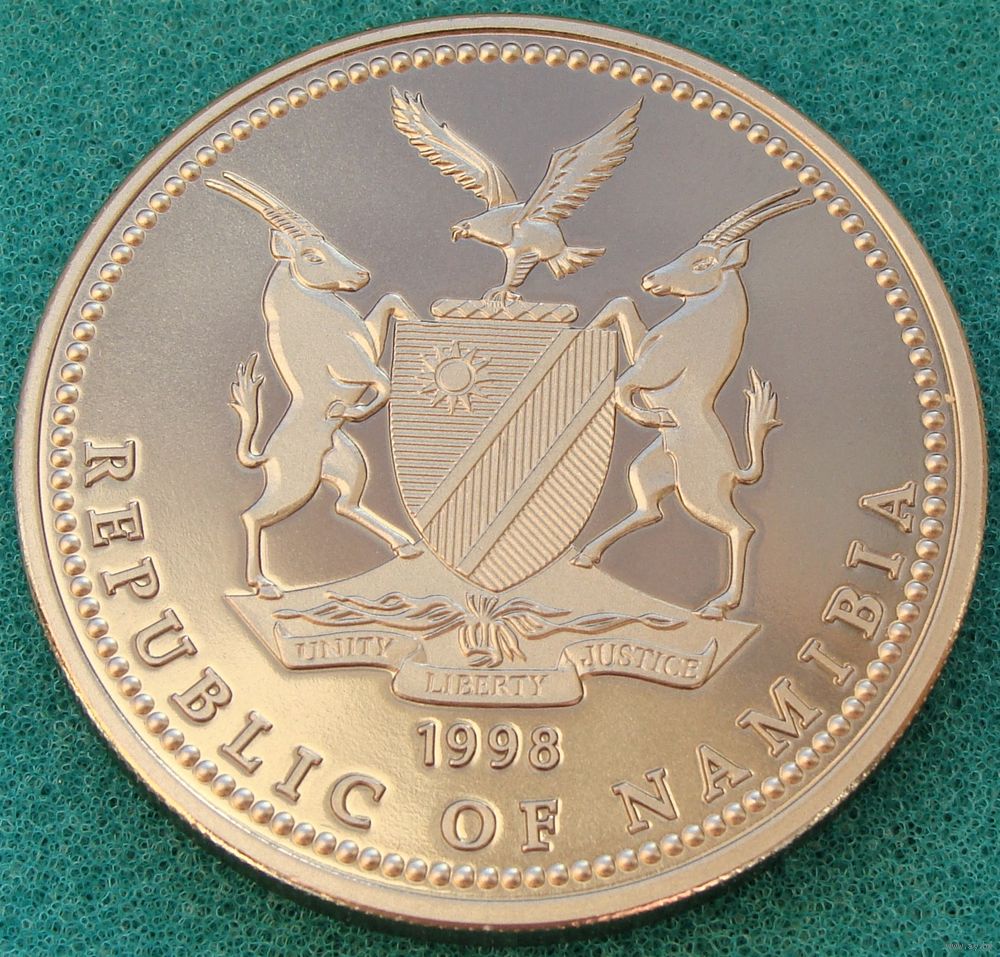 ///////// Доброго времени суток, спасибо, что заглянули в мой лоток. ////////// Данный лот выставлен на продажу как предмет коллекционирования и не является пропагандой чего бы то ни было, а также не является валютной сделкой!!!! Важно - Участникам торгов с отрицательным, нулевым или низким рейтингом просьба подтвердить намерения покупки лота по телефону или в обсуждениях лота. Лицам ранее не выкупившим у меня лоты, просьба ставки не делать, иначе они будут удалены. К Участию в торгах не допускаются лица не прошедшие верификацию на сайте. Продавец, сохраняет за собой право, снять ставку участника или отказать в продаже лота, если у продавца имеются подозрения в недобросовестности покупателя или отрицательные отзывы. ////////// Отправка обычным письмом, конвертом 1-ого класса, мелким пакетом (посылкой, бандеролью) с наложенным платежом и предоплата "на телефон" не рассматривается!!! В случае невыхода на связь или немотивированного отказа от покупки лота(ов), буду вынужден поставить отрицательный отзыв и переставить лот(ы). ////////// Информация: WWC номер KM # 12 Страна: Намибия Период: Республика Намибия (1993 - 2023) Валюта: Доллар Намибии Вид чекана: Коллекционные монеты Номинал: 1 доллар Год: 1998 Наименование: Синий кит Материал: Медно-никелевый сплав Гурт: Гладкий Форма: Круг Отношение авс/рев: Медальное (0°) Вес (g) 26.5 Диаметр (mm) 37.0 Толщина (mm) 3.0 Тираж: 7.500 шт ///////// Состояние монеты фото ///////// Описание: Моя оценка состояния может не совпадать с вашей. Внимательно изучите фотографию!!!