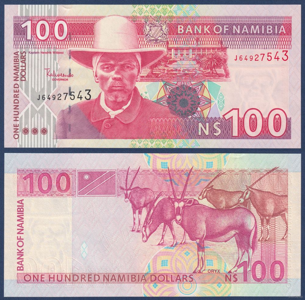 Намибия, 100 долларов 1999-2003 г., P-9A (J, вождь Хендрик Витбой, антилопа орикс), UNC