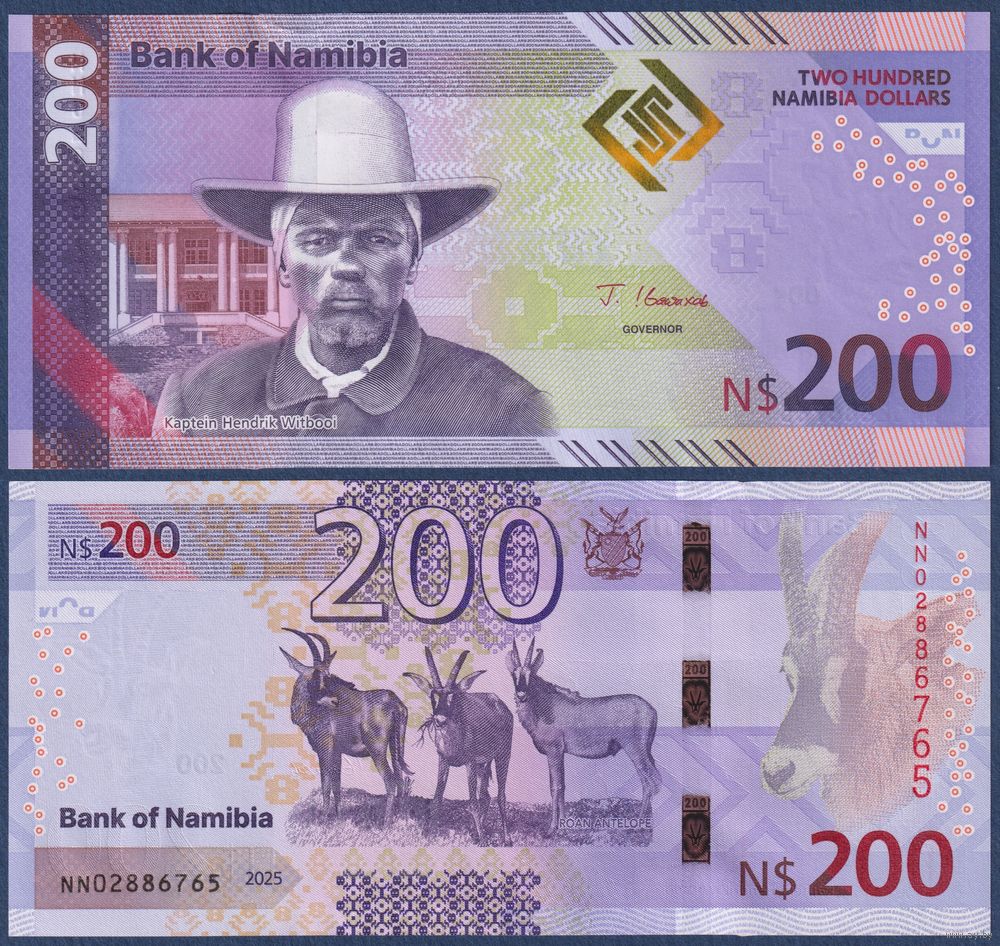 Намибия, 200 долларов 2025 г., P-W24 (NN, вождь Хендрик Витбой, лошадиная антилопа), UNC