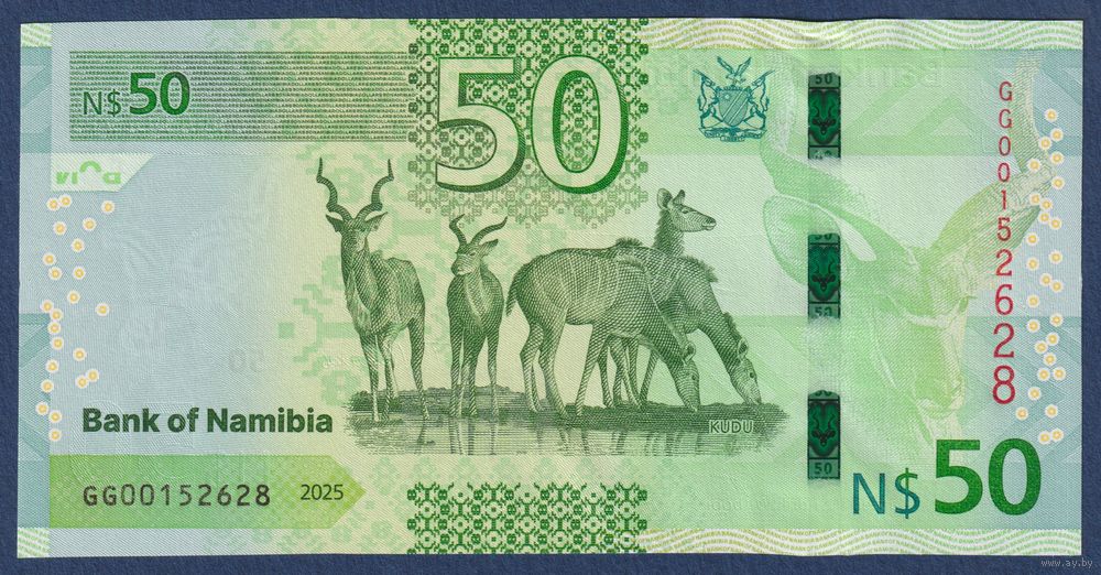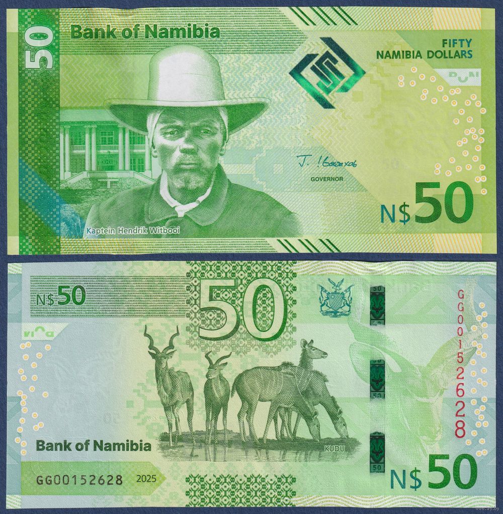 Намибия, 50 долларов 2025 г., P-W22 (GG, вождь Хендрик Витбой, антилопа куду), UNC