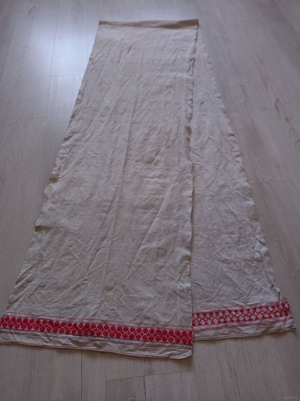 Состояние хорошее элемент белорусского национального костюма изготовлен в ручную из самотканой льняной ткани, узоры тканые, середина 20го века смотрите, 270×44см, смотрите все мои лоты