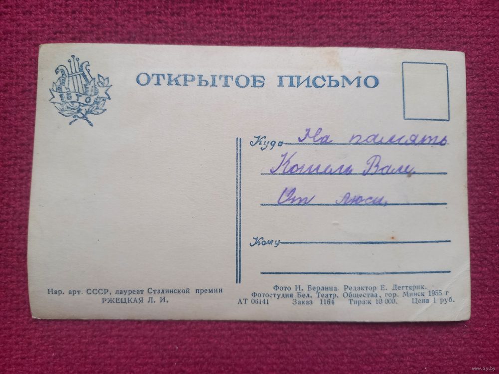 Народный артист СССР Л.И. Ржецкая. Минск 1955 г. Берлина.