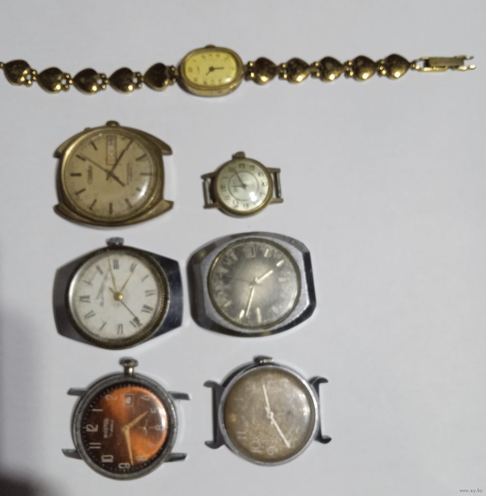 Часы наручные: 1.Восток экспортные 17 камней мужские, 2. Ракета экспортные мужские,3. Слава автоподзавод 27 камней мужские, 4. Победа мужские, 5. Пилот 23 камня мужские, 6. Слава 17 камней женские, 7. Луч женские.