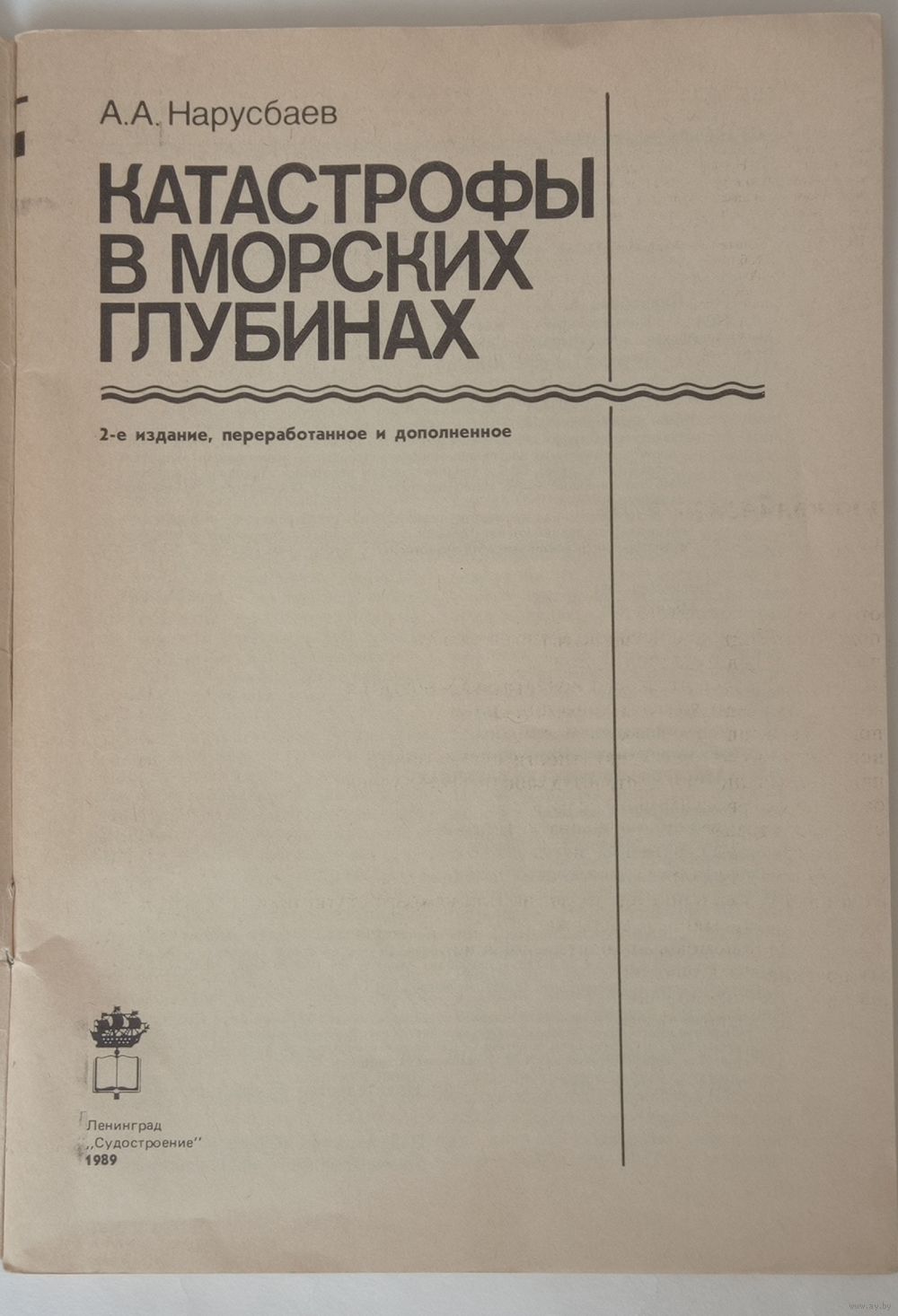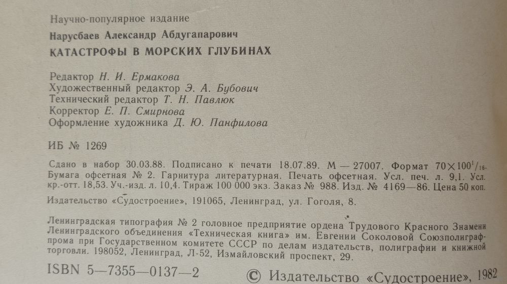 Нарусбаев. Катастрофы в морских глубинах. Изд. Судостроение 1989г. 112 страниц, увеличенный формат.