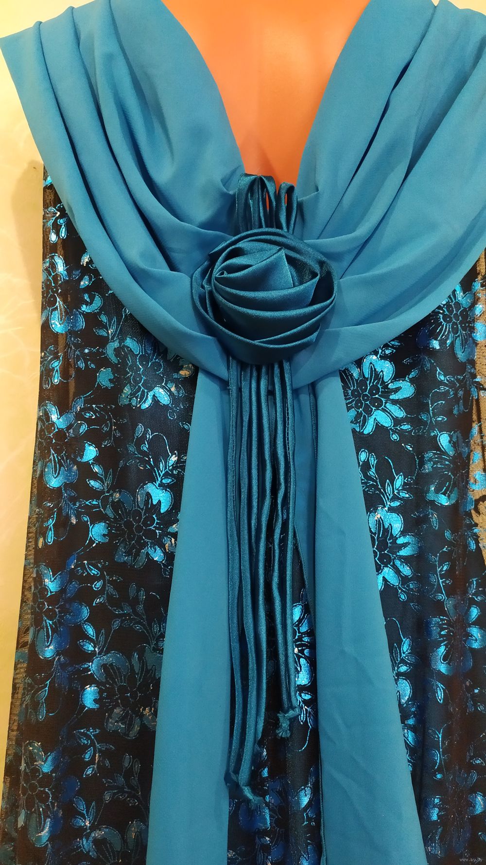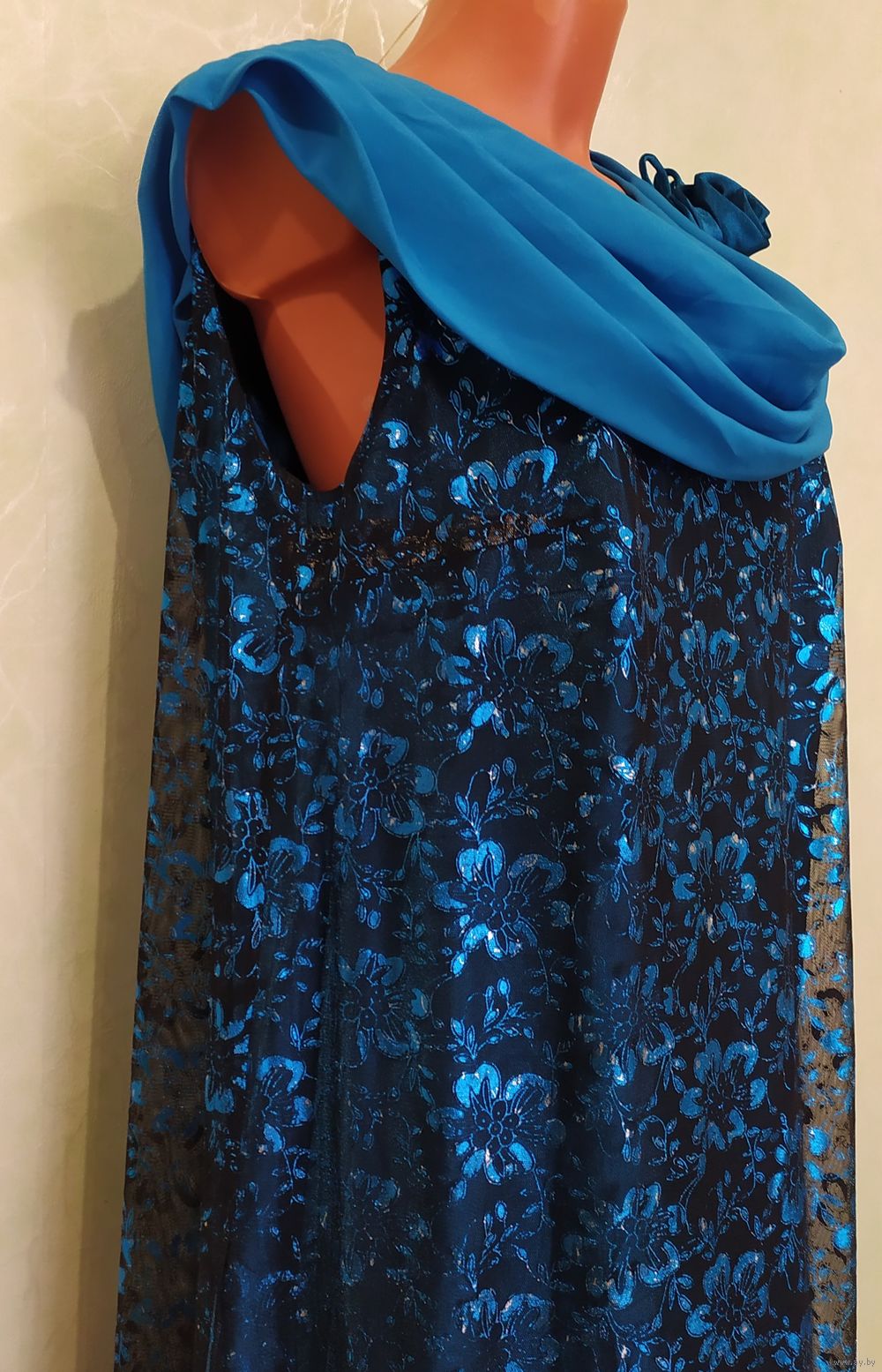 ЦВЕТ: оттенки бежевого, нежно голубого, синего, на поясе - вышивка серебряной нитью