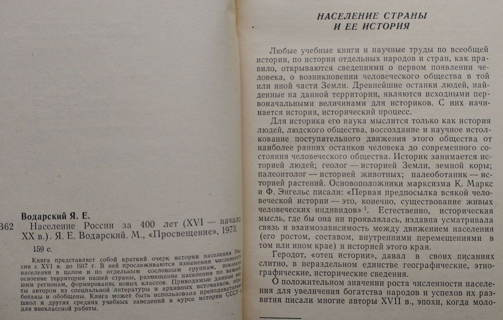Тираж 40000 экз. 168 стр. Предложенная методика анализа источников, как нам представляется, в целом оправдала себя: она выявила их недочеты и позволила обосновать исходные данные для расчетов, с помощью которых возможно хотя бы отчасти компенсировать эти недостатки, т. е. дала возможность установить динамику численности населения и раскрыть его структуру и изменения в размещении в изучаемый период. Попытка решить вопрос о сопоставимости уездов на начало и конец изучаемого периода путем картографирования переписных книг и других источников и сравнения полученных данных с картами первой половины XVIII в. оказалась удачной. Было выяснено число уездов, определена их территория, доказана возможность сопоставления, выявлены территории, на которых происходило (или могло происходить) заселение, составлена впервые карта административно-территориального деления России в конце XVII — начале XVIII в. Рассмотренные данные раскрывают взаимосвязь социально-экономического развития и населения. Остановимся вкратце на основных конкретных проявлениях этой взаимосвязи. Хозяйственный подъем второй четверти XVII в. способствовал укреплению власти правящего класса; борьба дворянства против бояр и церкви закончилась победой и повела к установлению абсолютизма и сплочению дворянства как правящего класса-сословия. Изменения в численности и структуре феодально-зависимого населения в изучаемый период отражали глубинные процессы, происходившие в социально-экономическом развитии страны. Влияние этих процессов сказывалось не прямо, а опосредствованно — через политику правительства. Со своей стороны, изменения в населении тоже влияли на политику правительства, а через него — на социально-экономическое развитие. Основной феодально-зависимой группой населения было крестьянство, больше двух третей которого было закрепощено помещиками. Положение многочисленных категорий крестьянства под давлением крепостничества изменилось: они сблизились на общей классовой базе. Разные категории холопов исчезли, а большинство холопов — задворные и деловые люди, посаженные господами на земельные участки еще в начале второй половины XVII в., — слились с крепостными крестьянами, каковыми они уже давно фактически были Политическая и социальная обстановка, сложившаяся на Левобережной и Правобережной Украине, побуждала украинцев к переселению на новые земли, где правительство давало им льготы. Дворянство, вышедшее победителем из внутриклассовой борьбы с боярством и укреплявшее свои позиции созданием абсолютистского государства, воспользовалось народными переселениями для укрепления и расширения крепостнического землевладения. Численность помещичьих крепостных значительно возросла. Увеличилась и численность крепостных крестьян духовенства, хотя в гораздо меньшей степени; причина, по-видимому, заключалась в определенной политике правительства, направленной на сокращение владений духовенства.