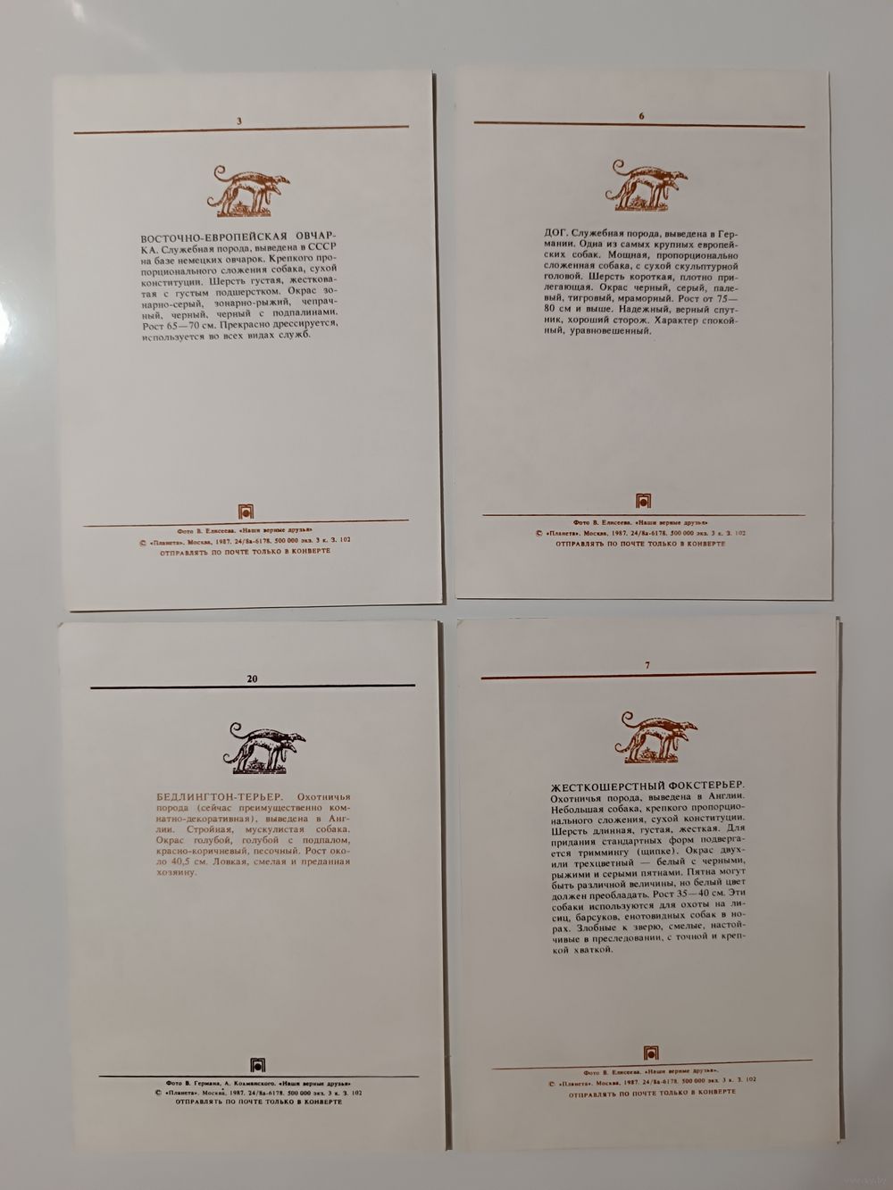 Наши верные друзья. Собаки. Набор открыток, 20 штук. 1987г.