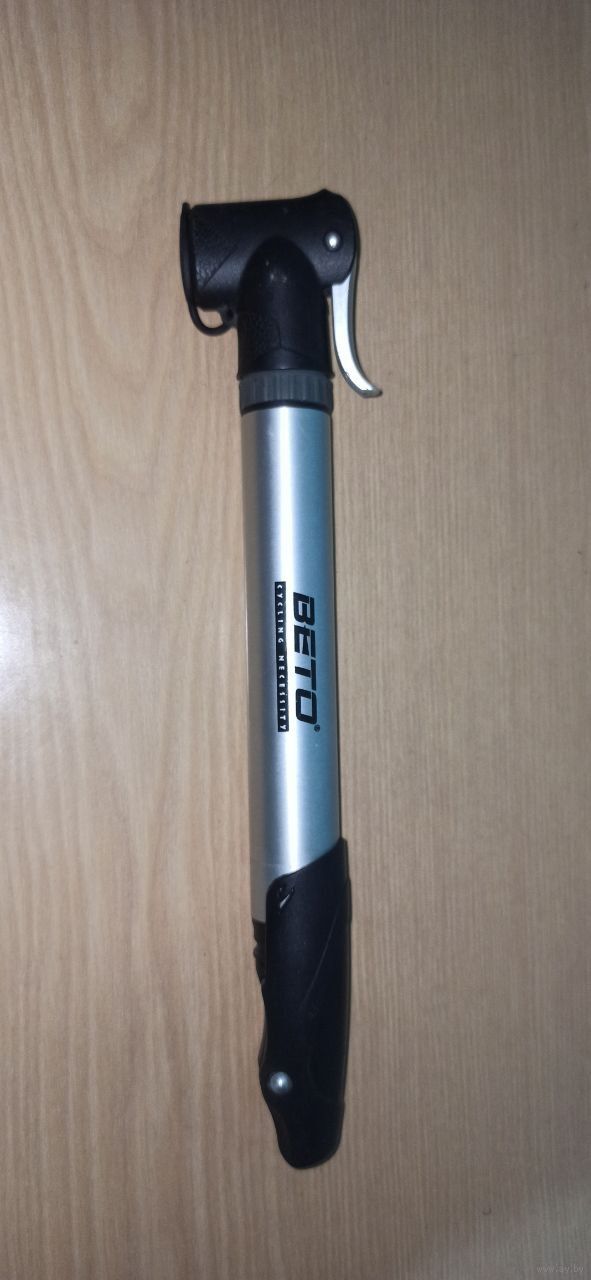 Насос BETO Алюминиевый с подвижной головкой и Т-образной пластиковой ручкой. Подвижная двойная головка для двух типов ниппеля: Presta, Schrader. Максимальное давление 80 PSI.