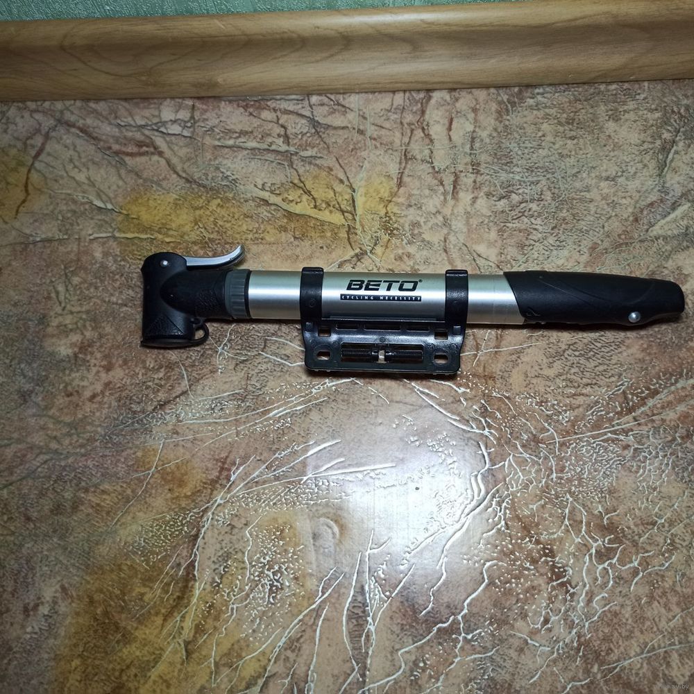 Насос BETO Алюминиевый с подвижной головкой и Т-образной пластиковой ручкой. Подвижная двойная головка для двух типов ниппеля: Presta, Schrader. Максимальное давление 80 PSI.