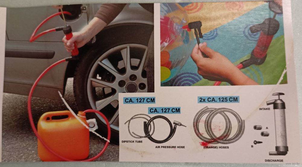 Насос сифонного типа применяется для перелива жидкостей или надувания воздушных шаров. Новый, покупался за пределами Беларуси за 12,99 Евро. Продаем из-за ненадобности так и не использованным.