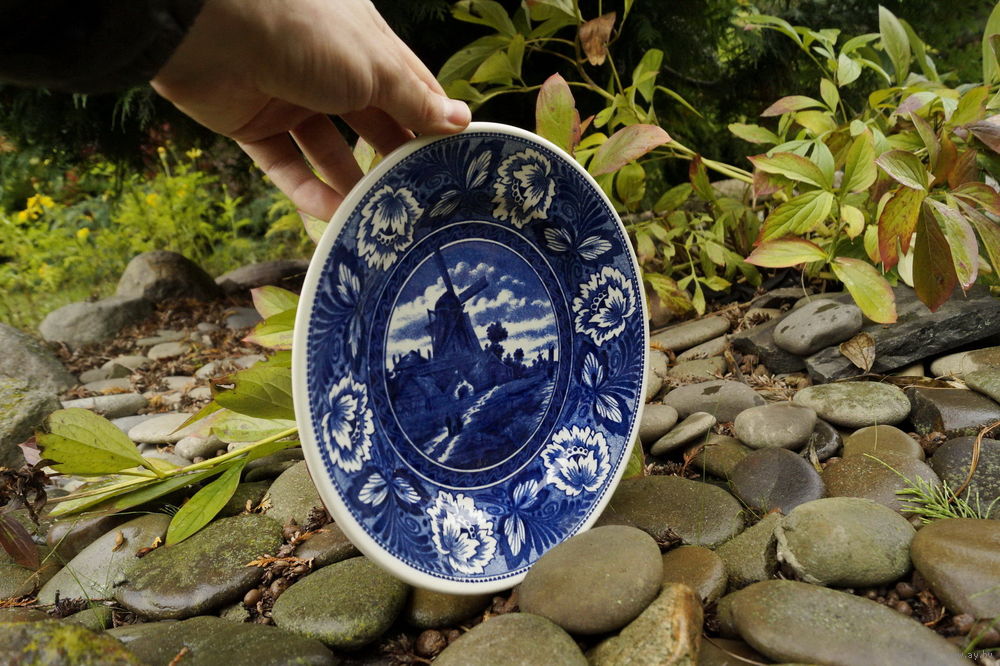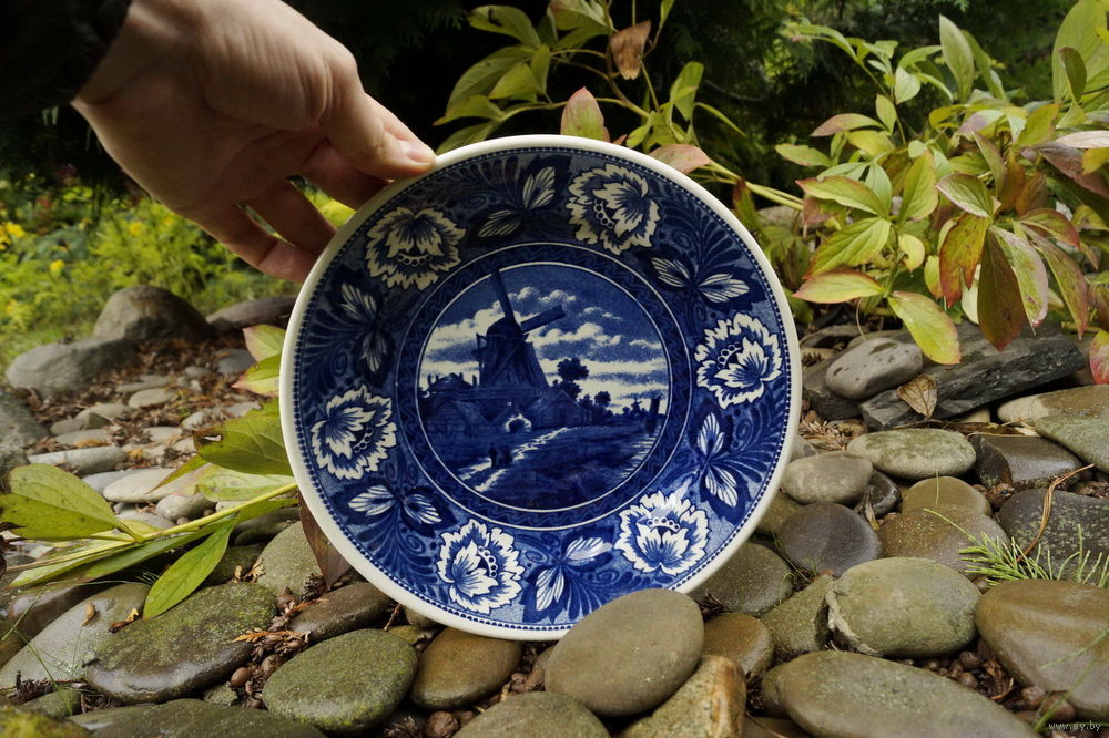 Красивая, сюжетная тарелка, "Мельница" Клейменая.