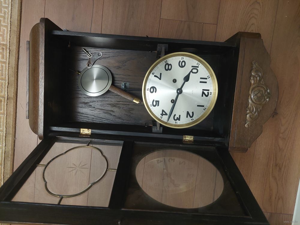 Ключ есть. Барабаны в порядке. Коробка и стекла норма.высота 700 мм. Ширина 330 мм.. диаметр циферблата 200 мм.
