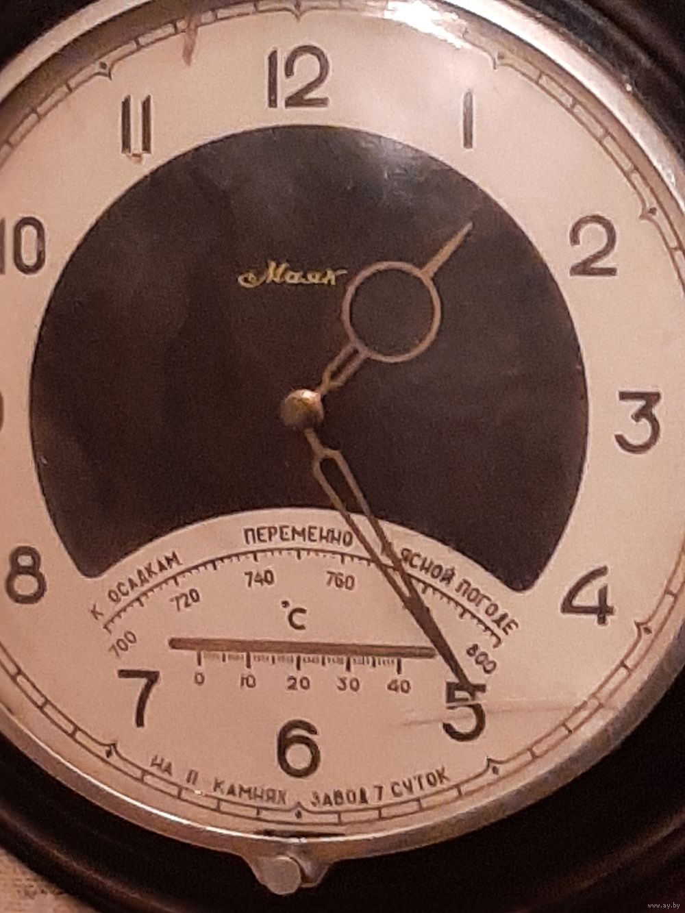 Часы рабочие. Барометр стрелки утеряны. Стекло пластик.