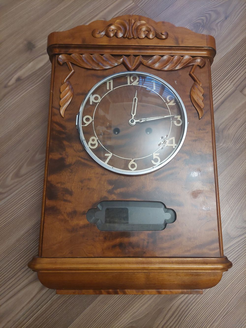 Родной сбор. Ход есть. Циферблат- 185 мм. Размеры 485-320-125 мм.8