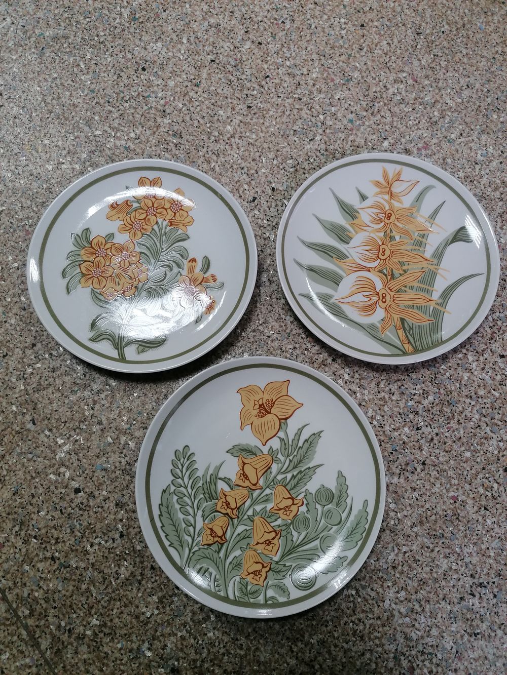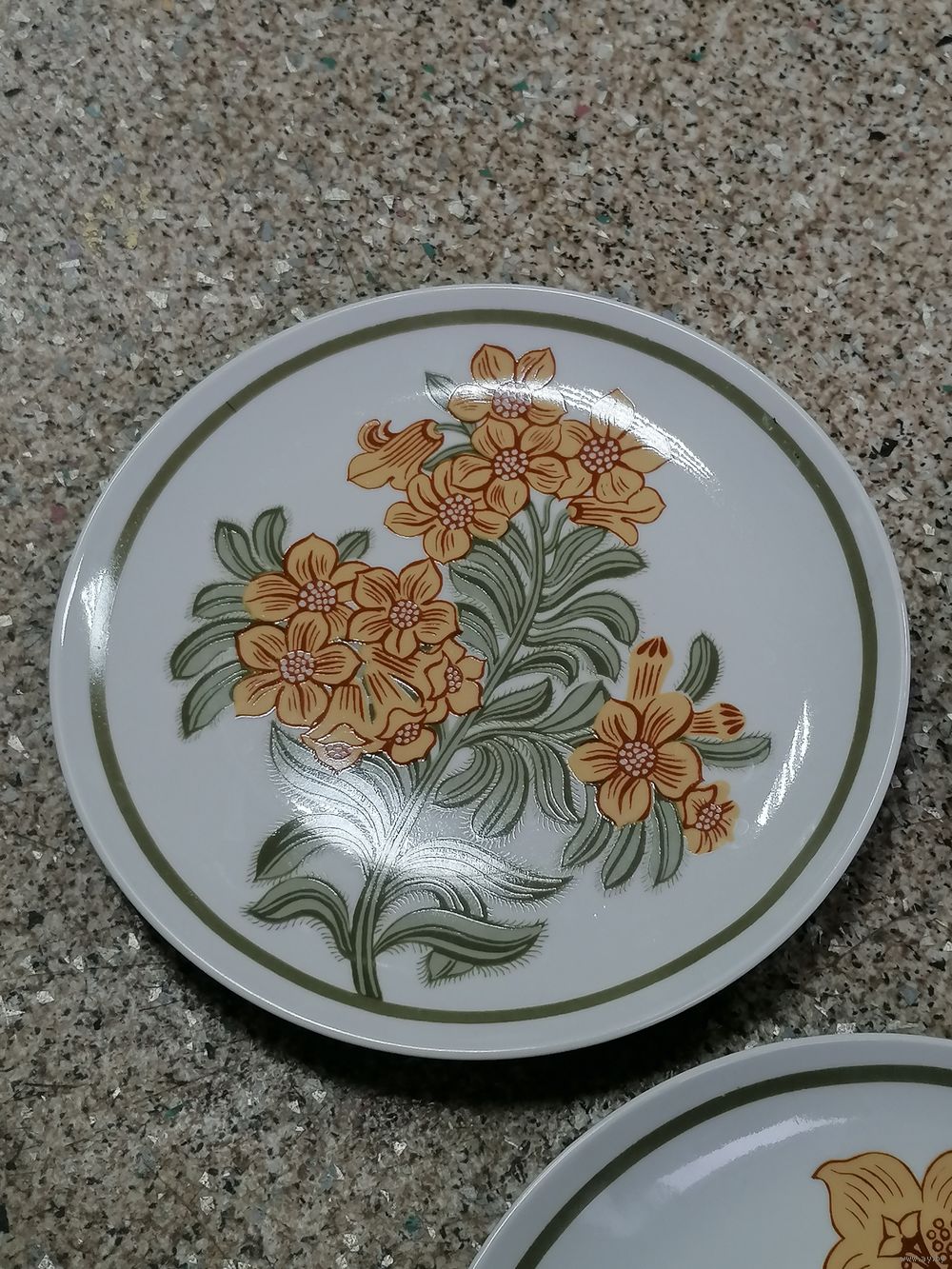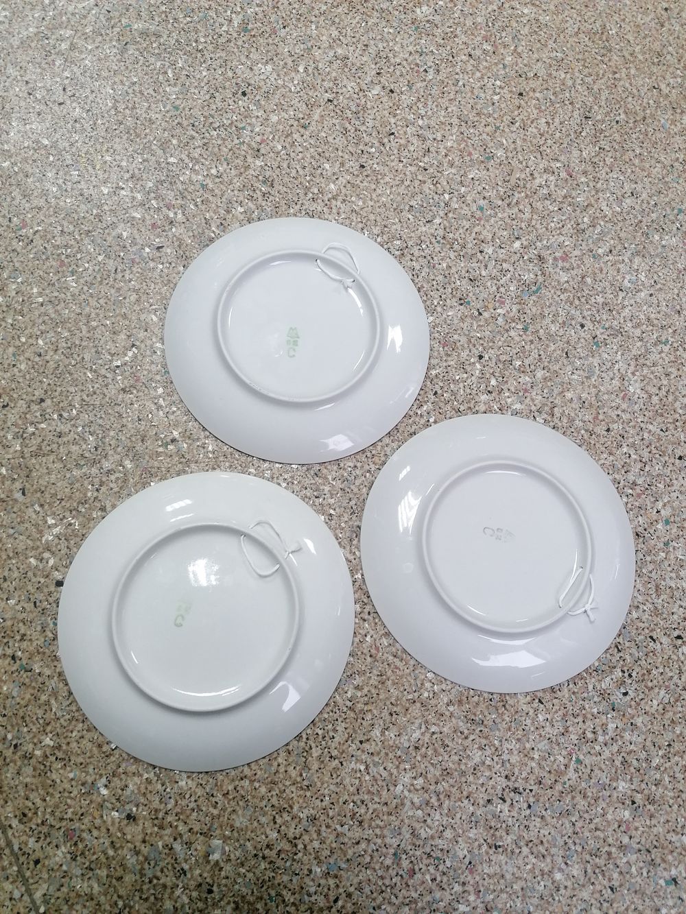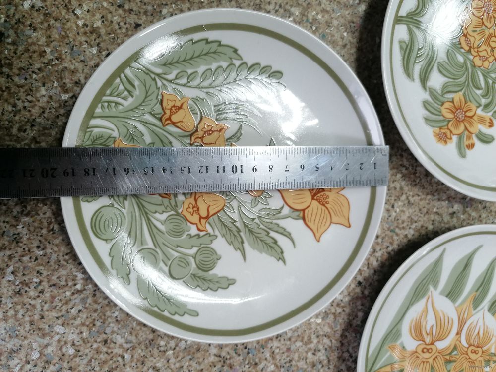Две тарелки без сколов и трещин. На одной есть скол.