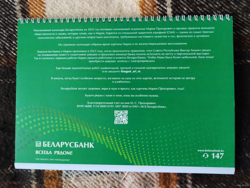 | Инклюзивный календарь с работами начинающей художницы Марии Прохорович. У Марии диагностирована спинально мышечная атрофия (СМА), но девушка полна позитивом, мужеством и творческими замыслами. | |