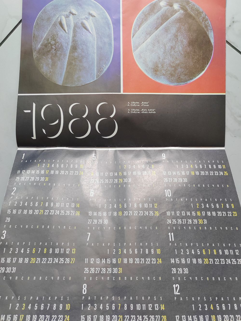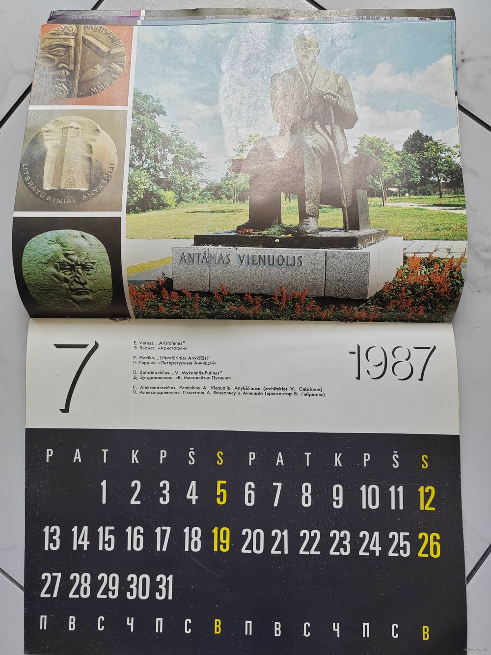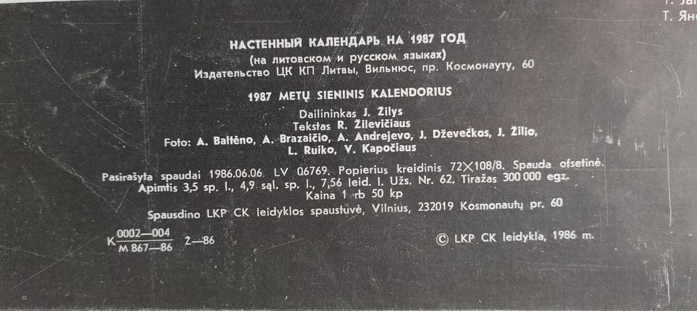 Настенный календарь. Известные личности и настольные медали. 1987 г. Литовская ССР.