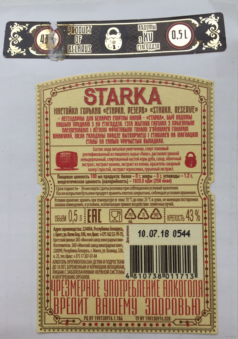 Настойка горькая "Starka" (Reserve)