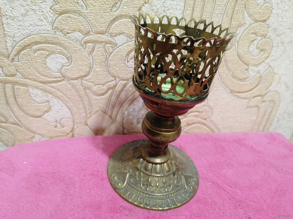 Настольная лампадка-14х9см.Сама лампадкалатунь диам-7cм.