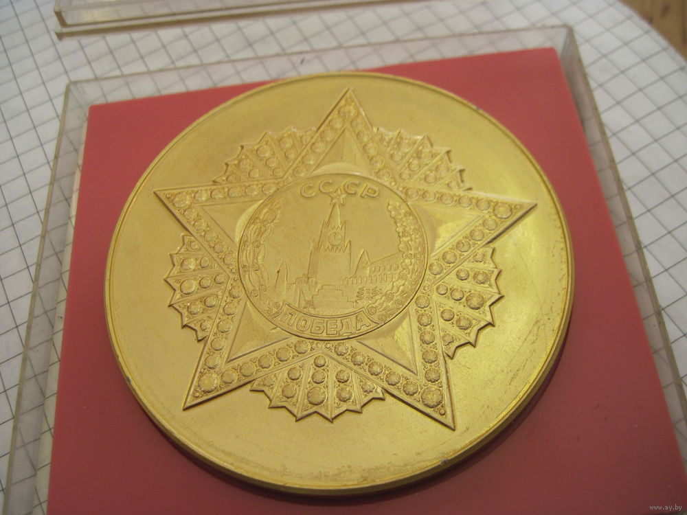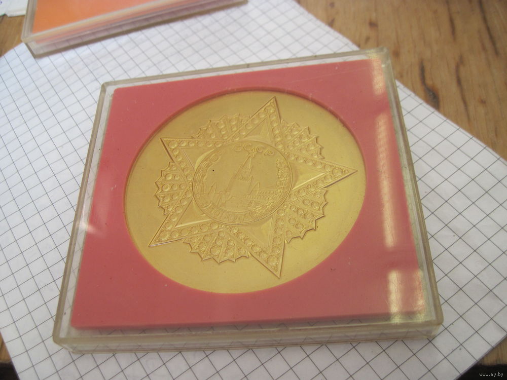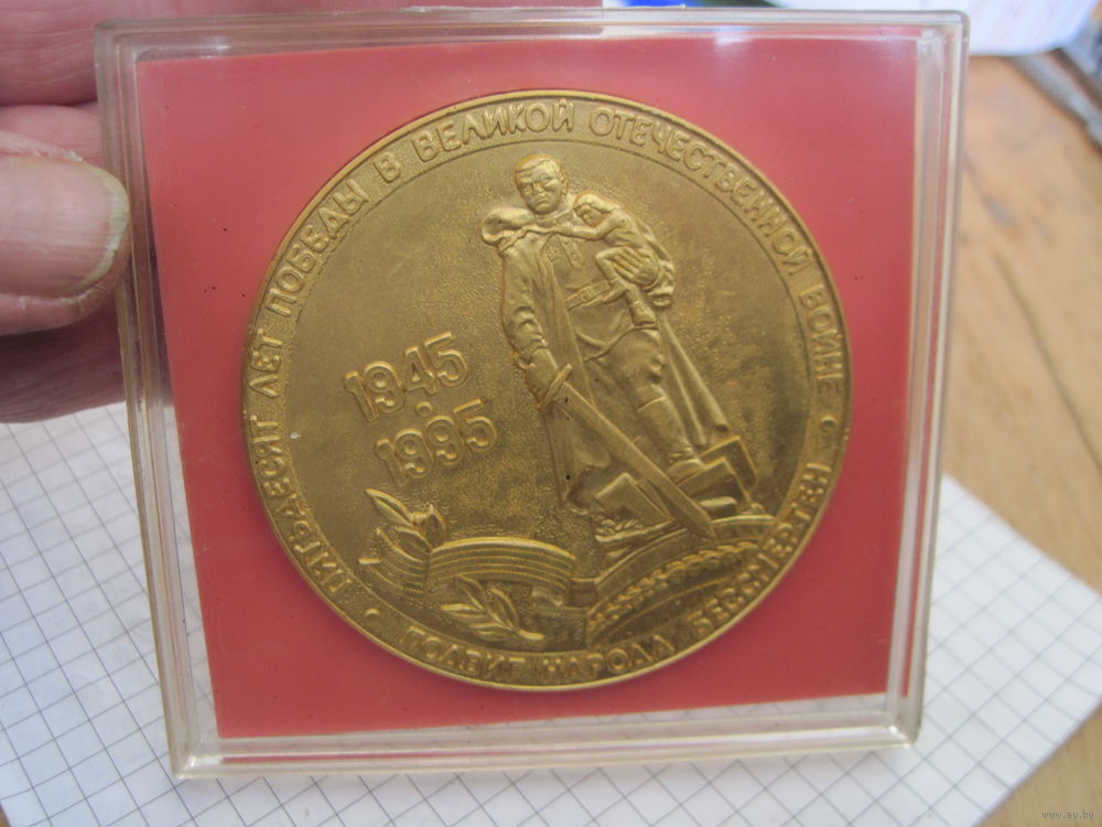 Настольная медаль 50 лет Победы в футляре. Торги!