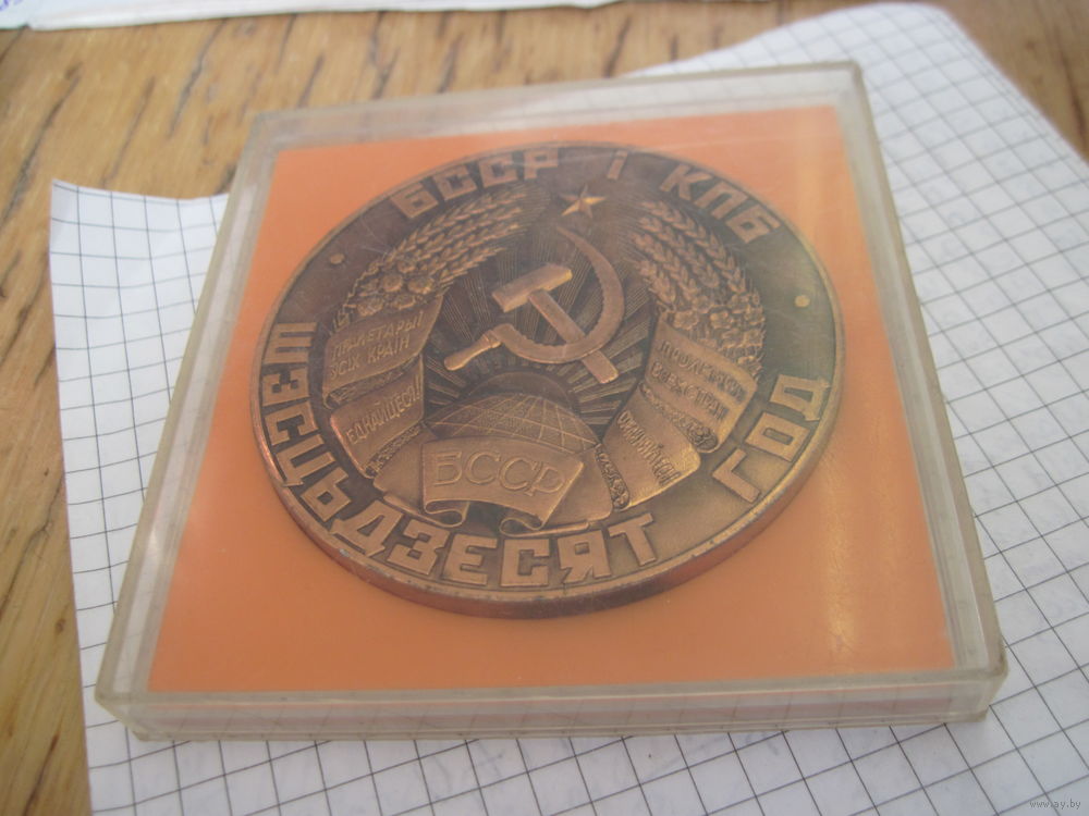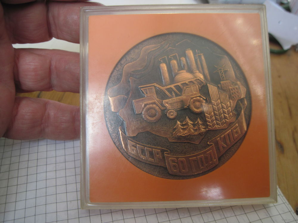 Настольная медаль 60 год БССР i КПБ в футляре. Торги!