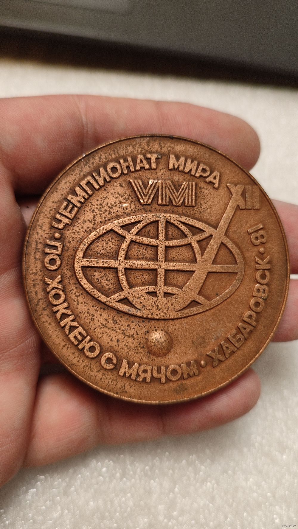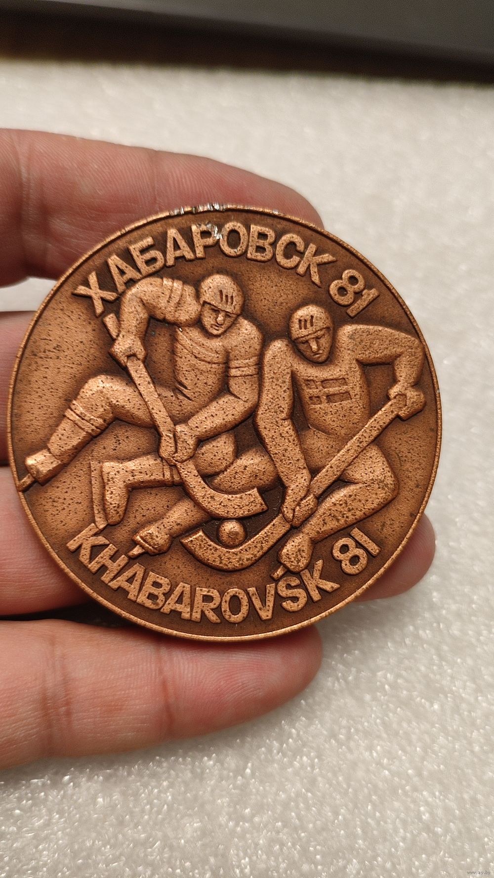 Настольная медаль Чемпионат Мира Хоккей с мячем Хабаровск 1981,200 лотов с 1 рубля!!!