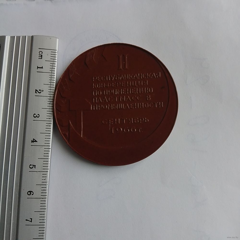 Настольная медаль для делегатов II республиканской конференции по применению пластмасс в промышленности. Сентябрь 1966 г.