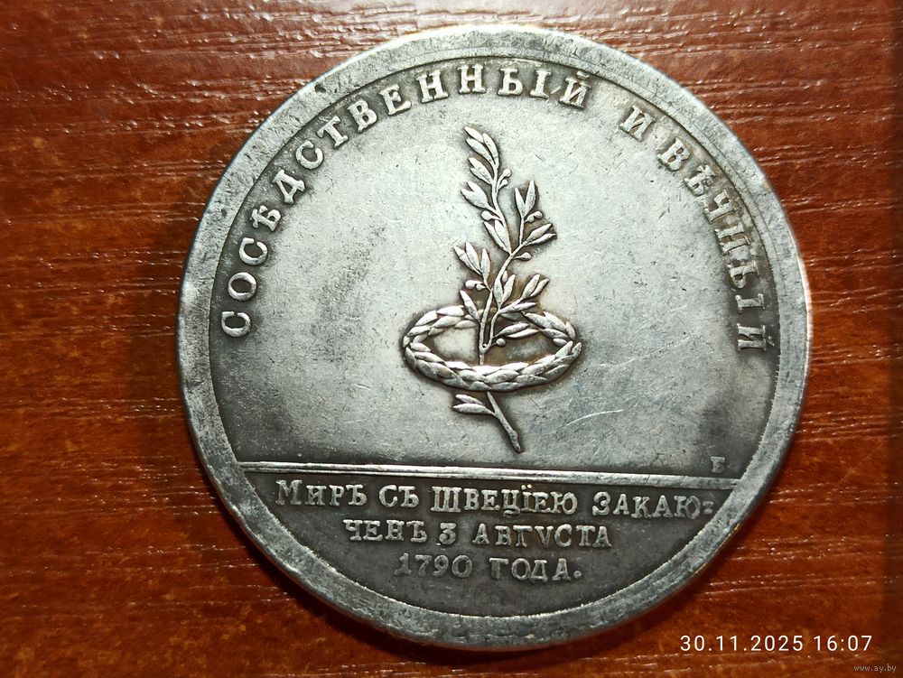 Настольная медаль КОПИЯ В память о заключении мира со Швецией 1790 г. с рубля
