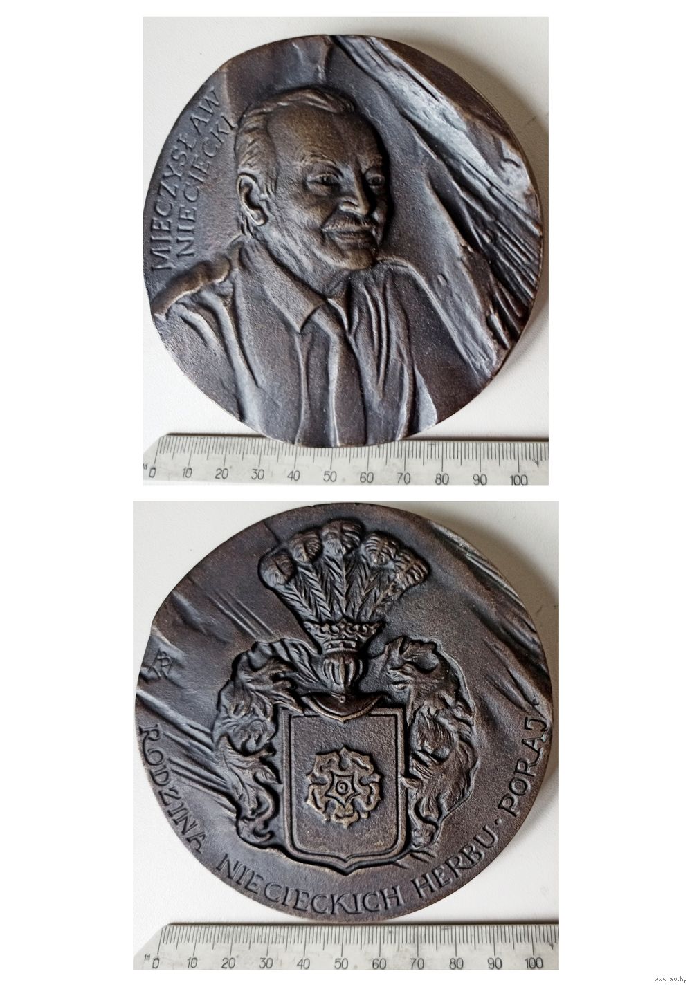 Настольная редкая медаль Мичеслав Несецкий родовой герб РОЗА . Крупная медаль, диаметр 105 мм. Уникальная редкая настольная медаль, возможно частный заказ в нескольких экземплярах. "Гербовник польской шляхты." Автор Несецкий