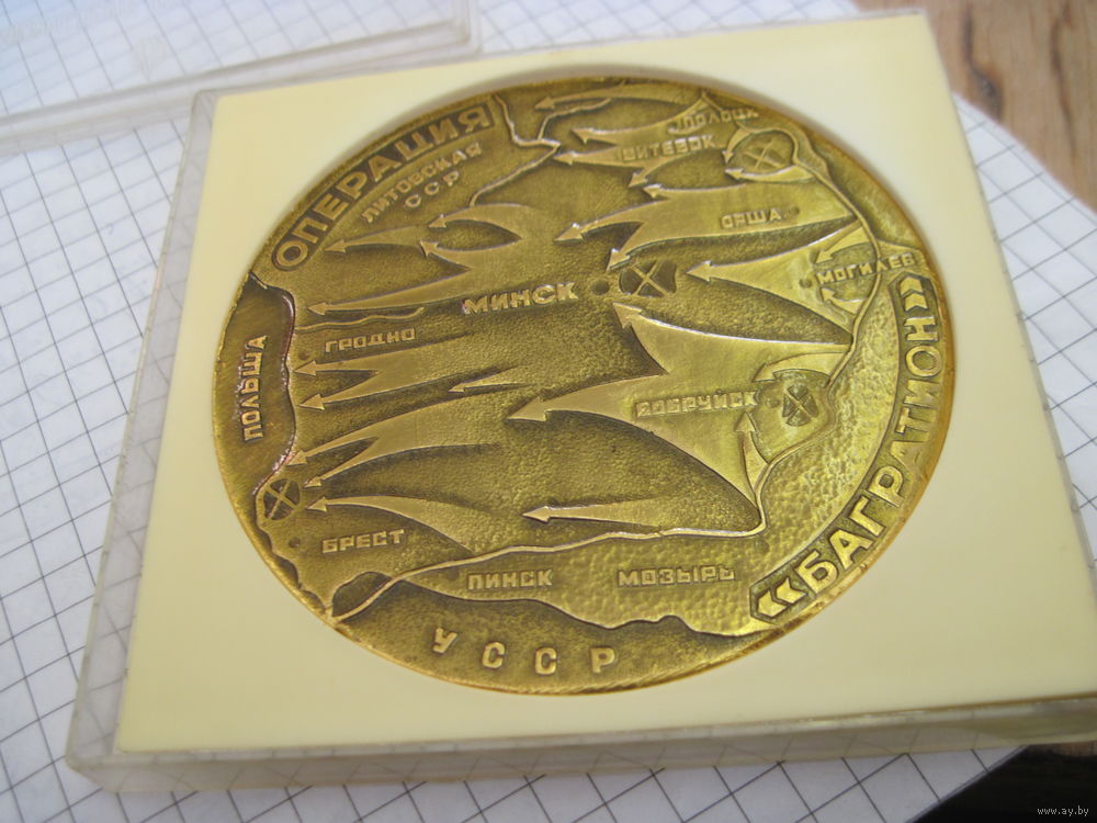 Настольная медаль Операция "Багратион". Курган Славы в футляре. Торги!