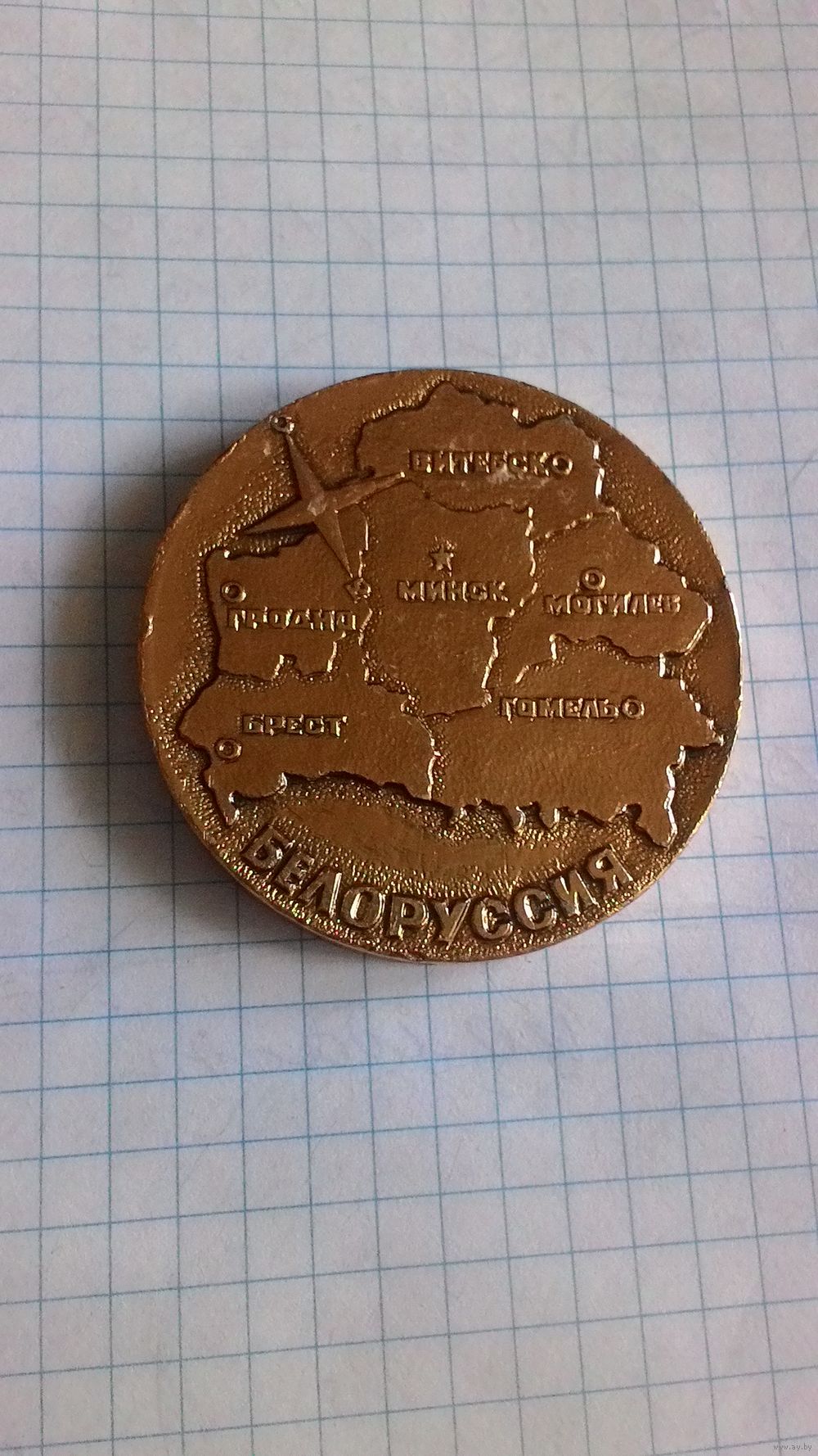 Заглавная медаль серии настольных медалей, посвящённых областным советам по туризму и экскурсиям БССР.