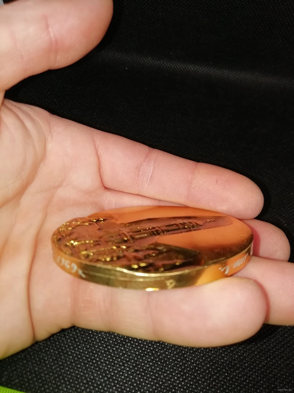 На ребре: «В ЭТОТ ДЕНЬ СЧАСТЬЕ НЕ ПРОШЛО МЕНЯ. 14 ИЮЛЯ 1969 ГОДА»