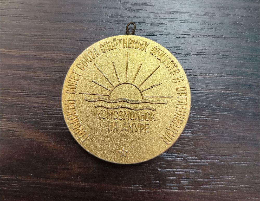 Настольная медаль выпущенная советом спортивных обществ и организаций города Комсомольск-на-Амуре . (алюминий )