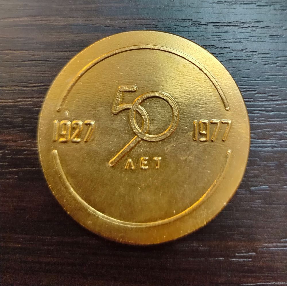 Настольная медаль выпущенный в честь 50-летия Минскому заводу Ударник . ( алюминий )1927-1977