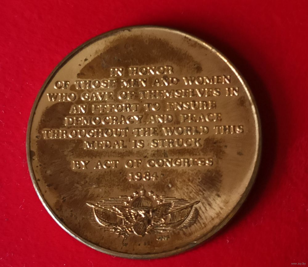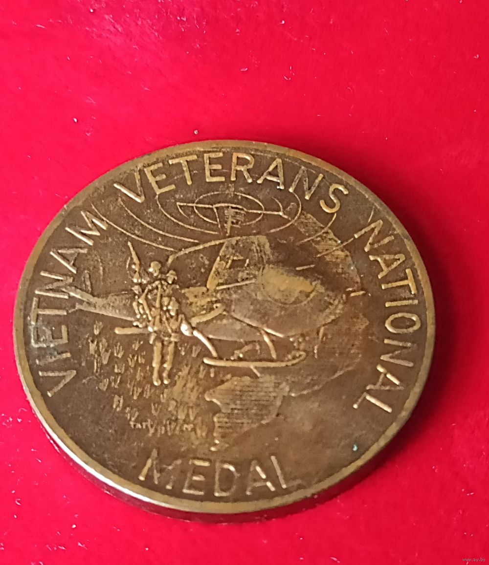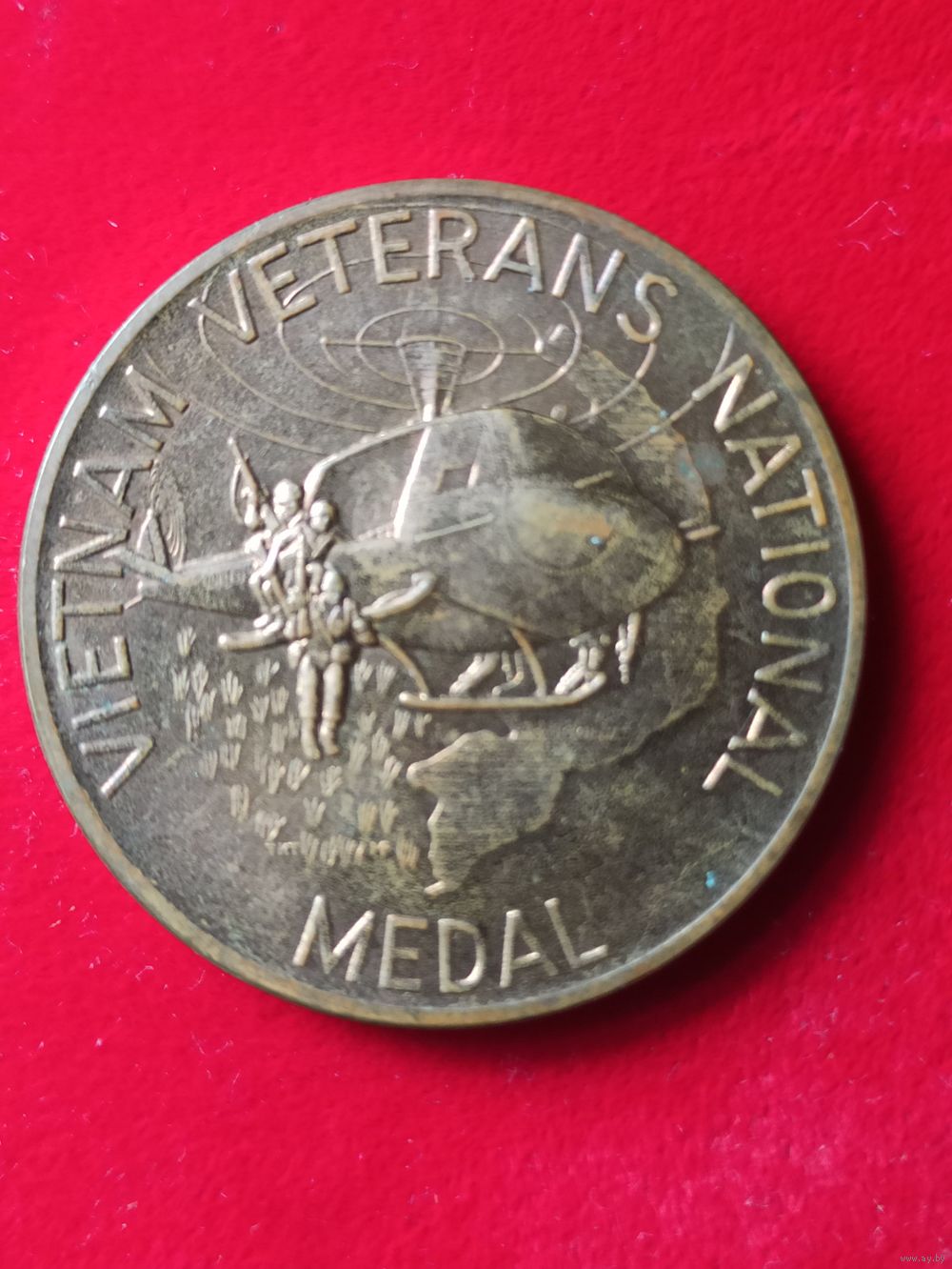 Национальная медаль ветеранов Вьетнама (Vietnam Veterans National Medal), выпущенная Монетным двором США в 1984 году. Материал и размер: Медаль выполнена из бронзы, её диаметр составляет 3 дюйма (около 76 мм). Дизайн: На аверсе изображен вертолет UH-1 "Хьюи" с солдатами на фоне карты Вьетнама.