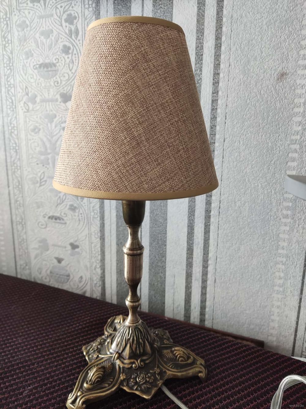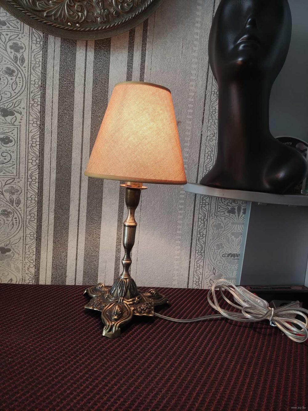 Настольная винтажная лампа. Бронза. Европа. Рабочая. Новая электроника и абажур. Высота 33,5 см. Абажур h=13 см, диаметр 15 см. Основание 15 х 15 см. Отличное состояние.