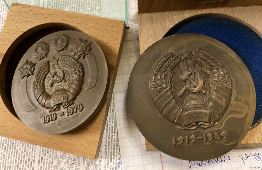 Настольные бронзовые медали для партийных боссов БССР в коробочках, 2 шт