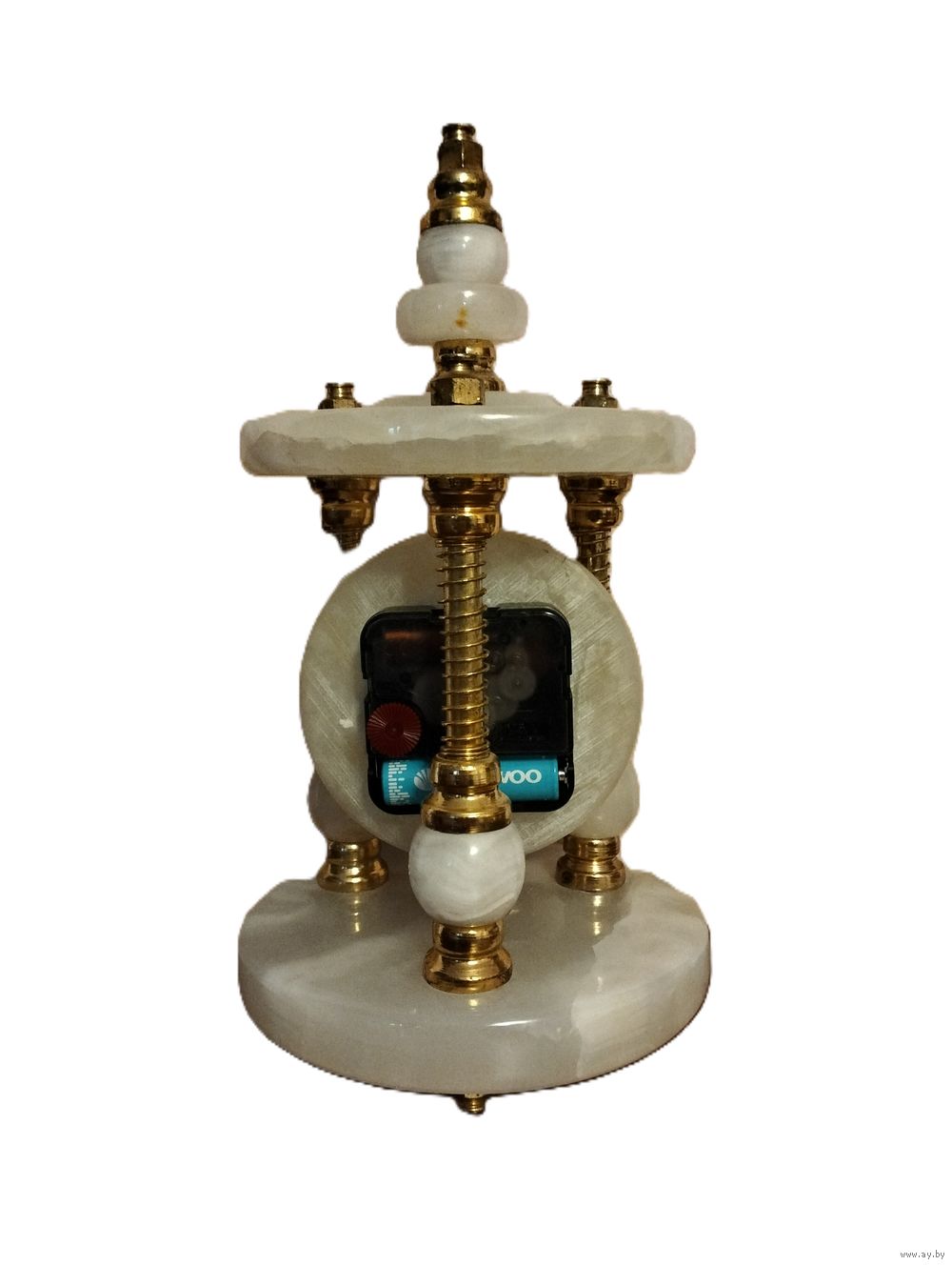 | Винтажные кварцевые настольные часы работают, от батарейки АА. Точный ход. Высота 25 см. Ширина основания 13,5 см. Вес 1,9 кг. | |