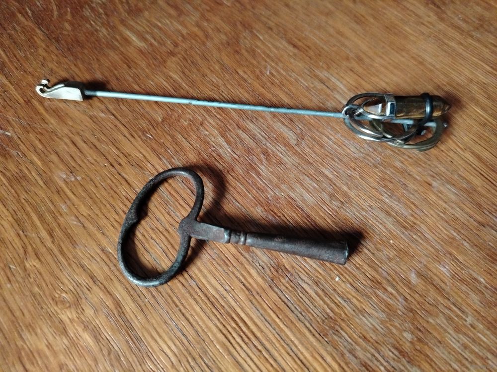 Маятник не родной - самодел из стержня универсального маятника и для веса двух колец и кулона из тигрового глаза - закреплено механически, и поэтому такой импровизированный маятник можно сдвигать вверх-вниз корректируя точность хода часов, и поворачивать влево-вправо, чтобы минимизировать вибрацию. Ключ в комплекте. См. последнее фото.
