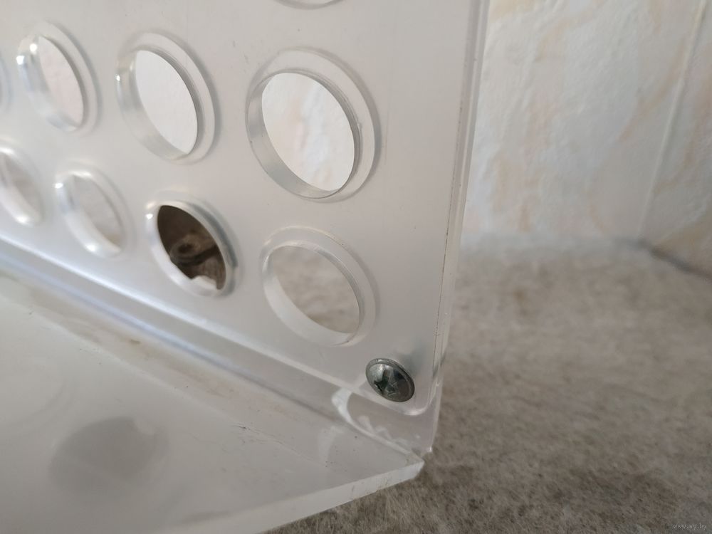 В нижнем левом углу стенда, на оргстекле, под защитной пленкой, имеется трещинка, абсолютно не влияющая на функционал стенда.