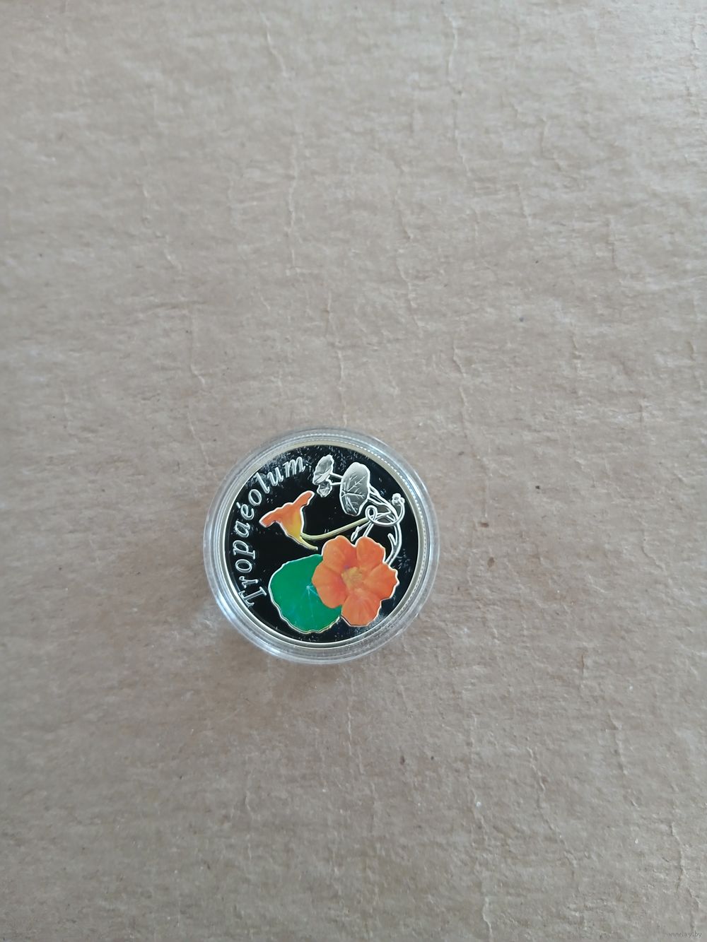 10 рублей Настурция из серии "Красота цветов ". Еле заметная патина по окружности.