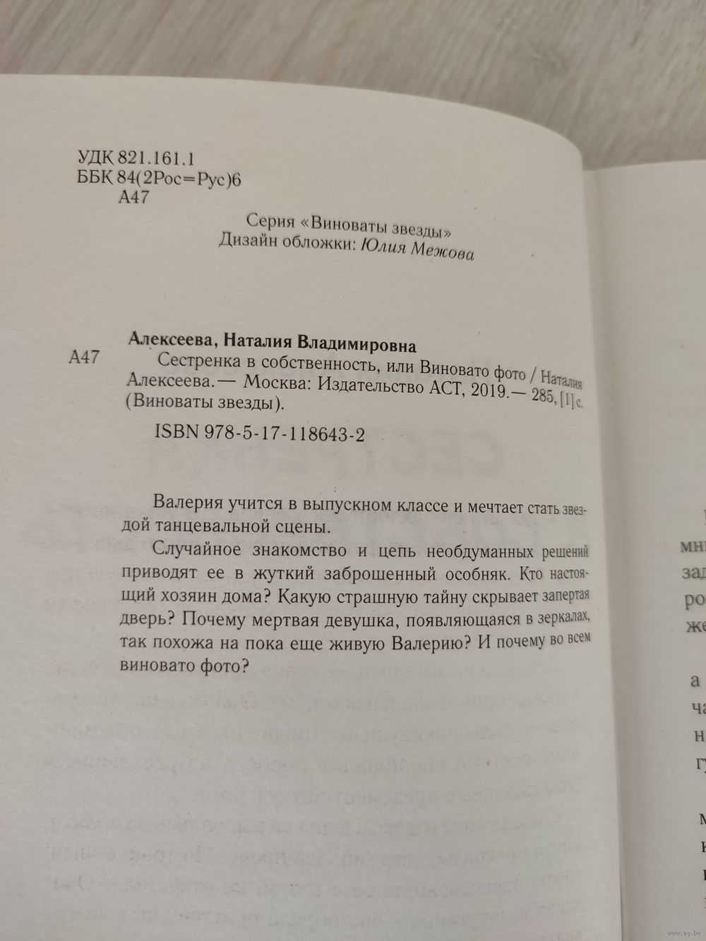 Наталия Алексеева "Сестрёнка в собственность" - 285 страниц, 2019 год издания.