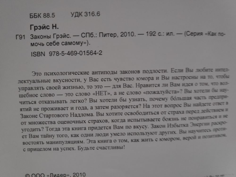 Это психологические антиподы законов подлости. Если Вы любите интеллектуальные вкусности, у Вас есть чувство юмора и Вы настроены на то, чтобы управлять своей жизнью, то это - для Вас. Нравится ли Вам идея о том, что волшебное слово - это слово "нет", а не слово "пожалуйста"? Вы хотели бы научиться отказывать легко? Вы хотели бы узнать, почему большая часть предприятий не проживает и года, а затем разоряется? На этот вопрос Вы найдете ответ в Законе Стартового Надлома. Вы хотите освободиться от страха перед действием и от множества оценочных страхов, когда испытываете боязнь не понравиться и не угодить? Тогда эта книга придется Вам по вкусу. Закон Избытка Энергии раскроет Вам тайну того, как одни люди умело используют других. Вы научитесь противостоять манипуляциям. Эта книга о том, как жить с юмором, верой и позитивом, с прицелом на успех. Будьте счастливы!