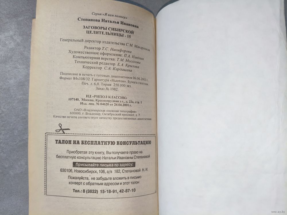 Наталья Степанова "Заговоры сибирской целительницы" Выпуск 15 из серии "Я Вам помогу"