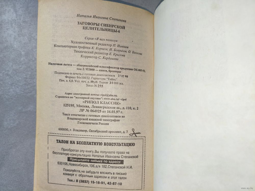 Наталья Степанова "Заговоры сибирской целительницы" Выпуск 6 из серии "Я Вам помогу"